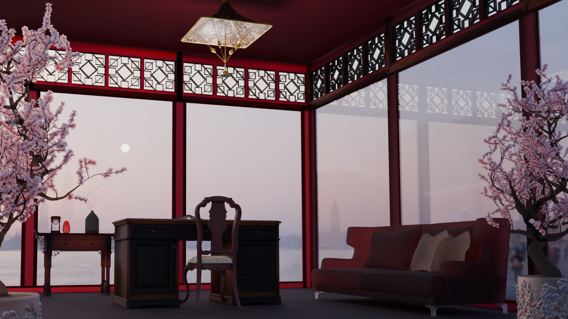 ガラス張りで海を眺めながら、リラックスできる非現実的な空間を目指しました。和風テイストでお気に入りです。