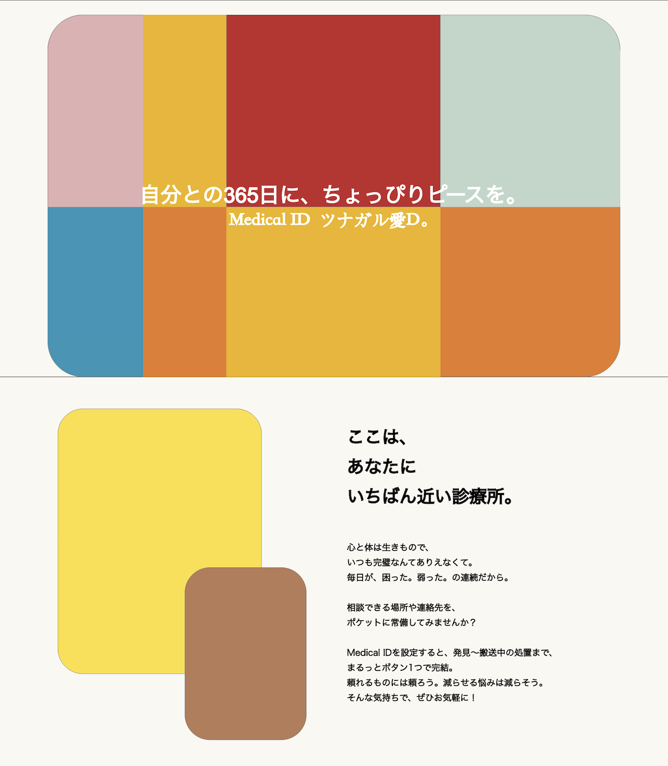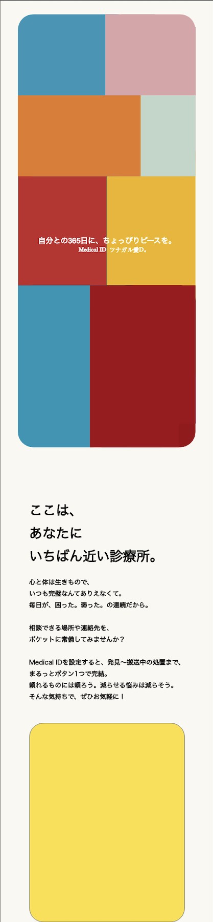 WEBページはカラフルに仕上げ、多様性を尊重する社会の重要性を表現した。明るい色合いは、メディカルIDの普及を促し、その重要性を視覚的に伝えている。