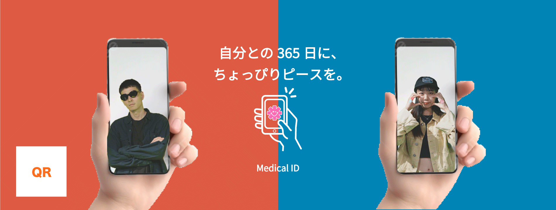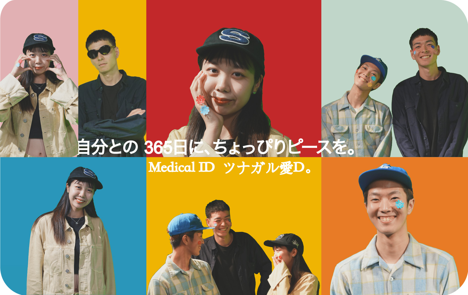 このテーマを視覚的に表現するため、メディカルIDの普及を目指したメインビジュアルを作成した。ビジュアルでは、人々の顔にシールを貼り、個々人がメディカルIDを持っていることを示した。このシールは、ひとりひとりがメディカルIDを設定し、使用する重要性を表現している。