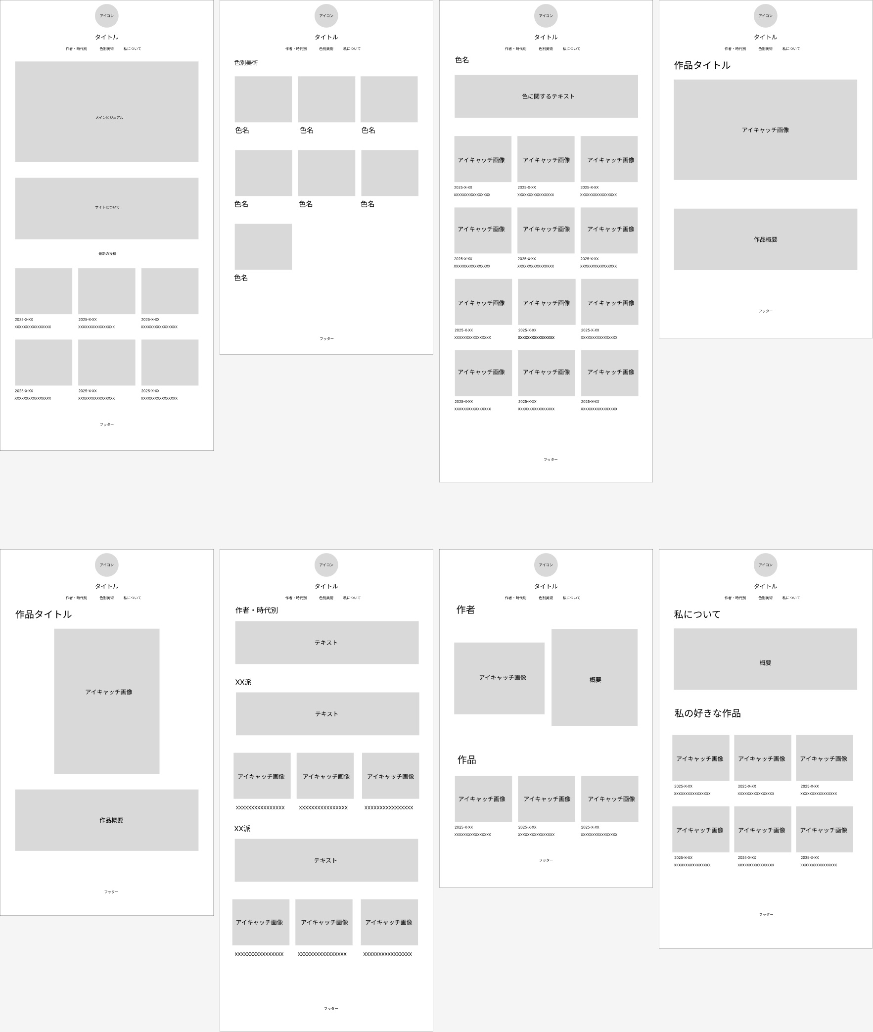 - 色別だけではなく、作者、年代でも分けられるようにする。