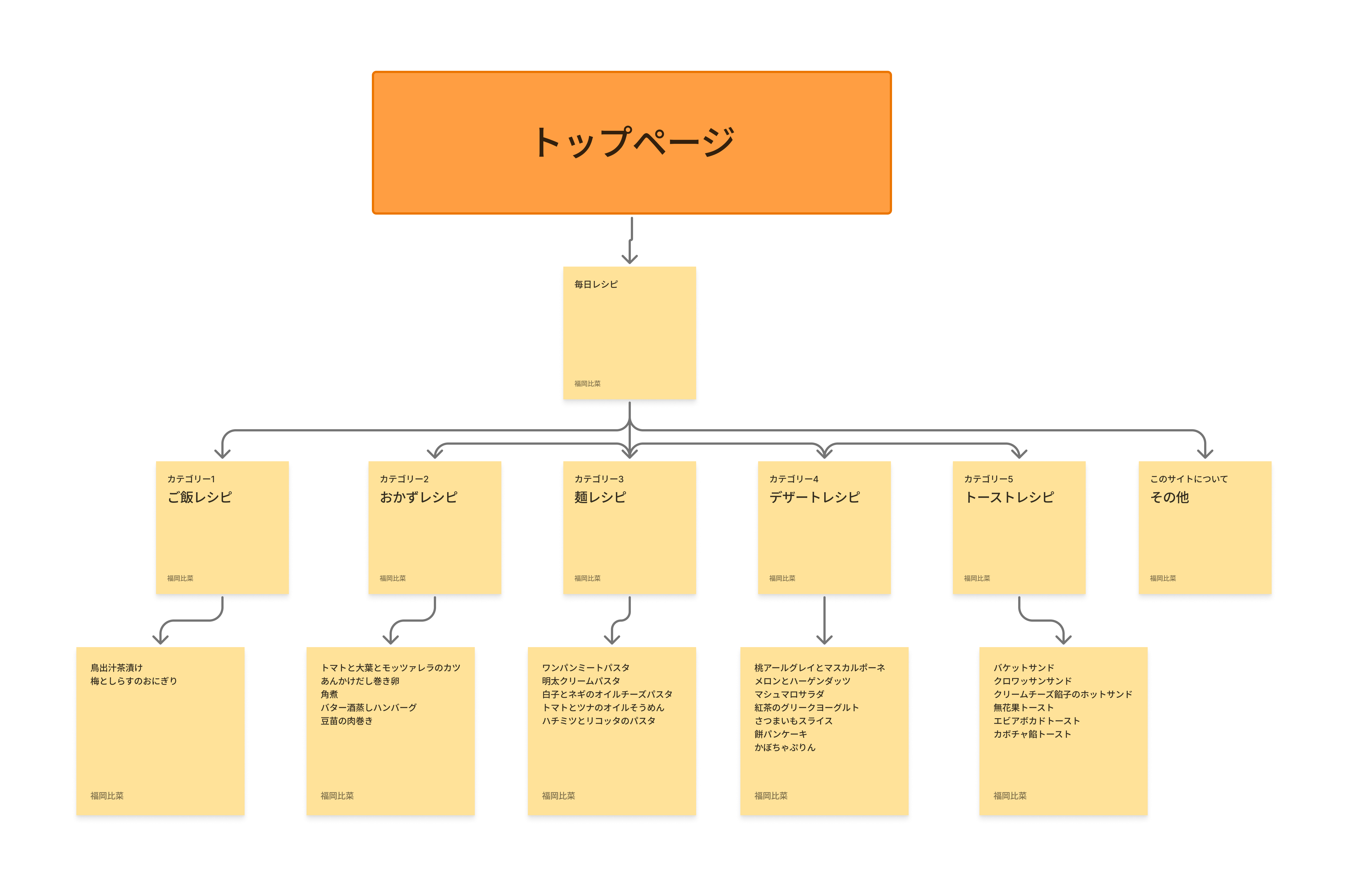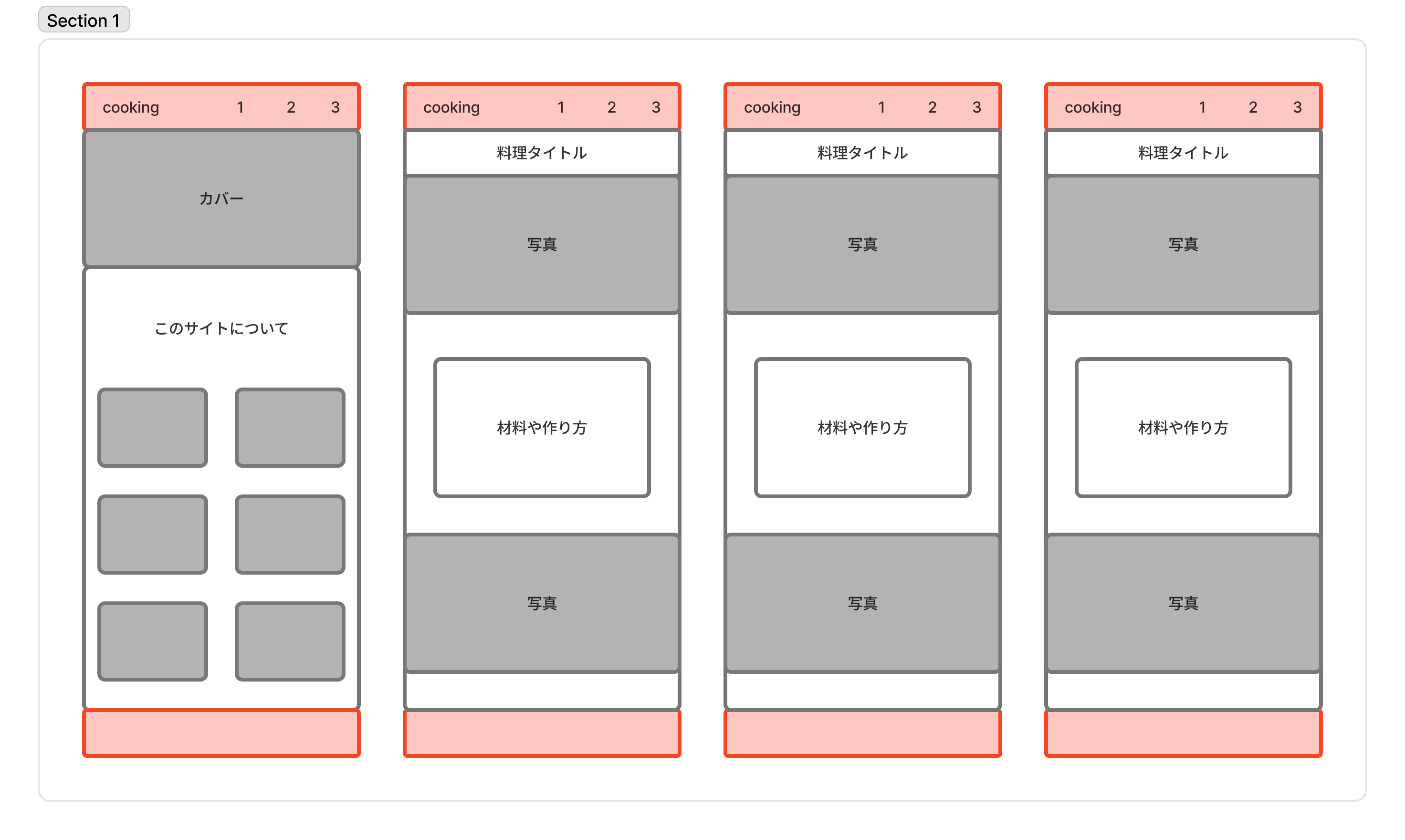 料理がメインのサイトなので構成自体はシンプルで料理が見やすいような構造にしていきたい。
