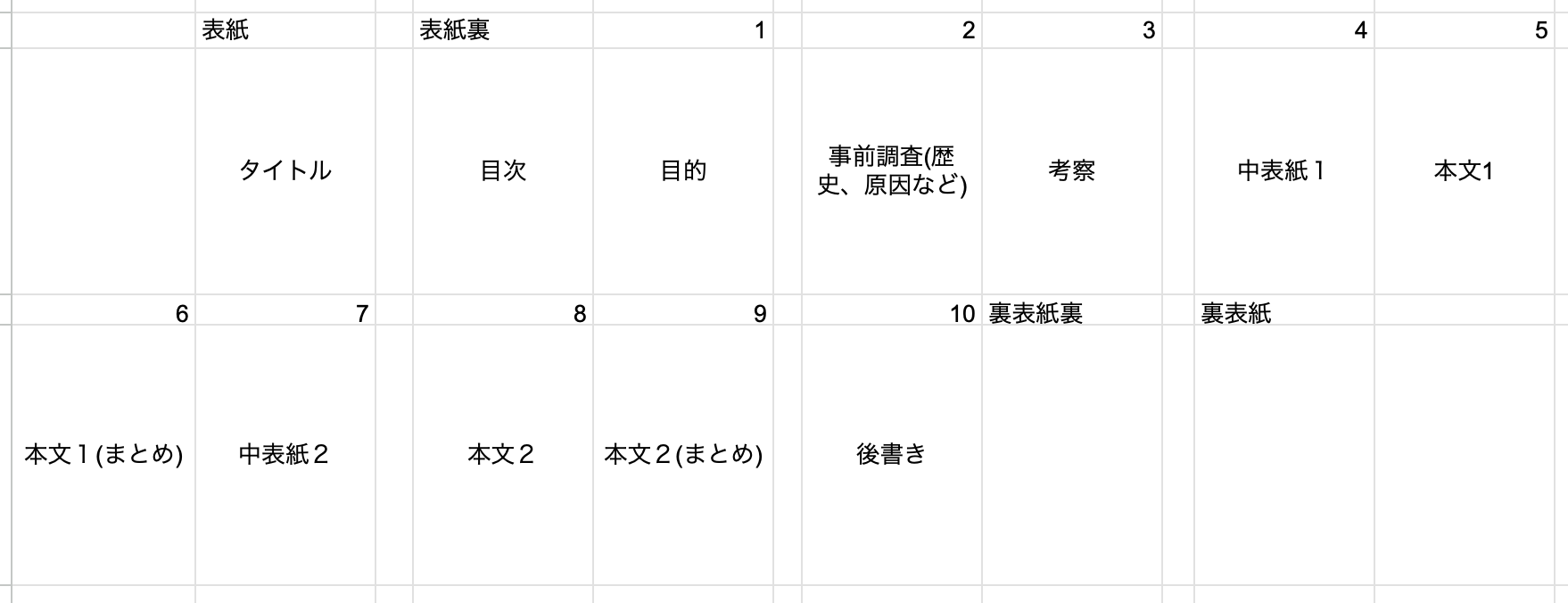 - Googleスプレッドシート上で台割を作成