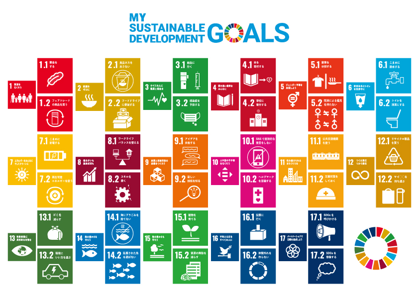 SDGs達成のための具体的な目標を達成するための個人でできることをアイコン化したもの