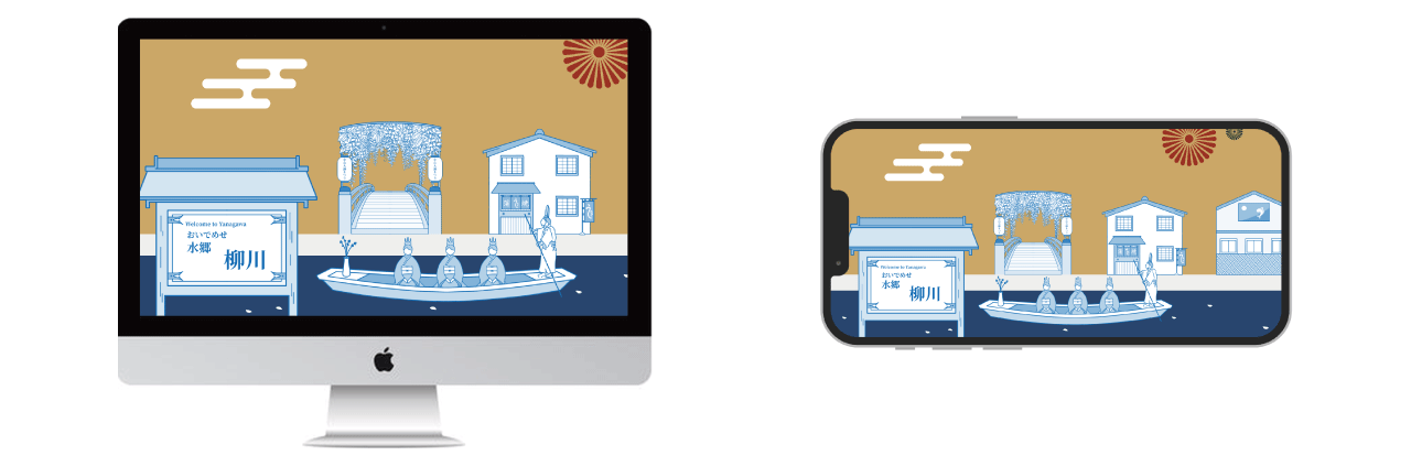 ユーザーが楽しみながら、柳川の魅力を知ってもらうWebデザインを目指し、観光名所や行事をイラスト化し、横スクロール形式で柳川の有名な観光資源である「川下り」を体験できるような仕掛けを盛り込む。視覚的に楽しめるデザインにすることで、より多くの人々に柳川の豊かな文化や魅力を身近に感じてもらう。
