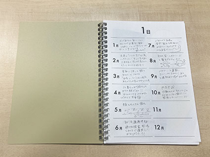 「月・日」ではなく「日・月」と逆に1日の12ヶ月を振り返る