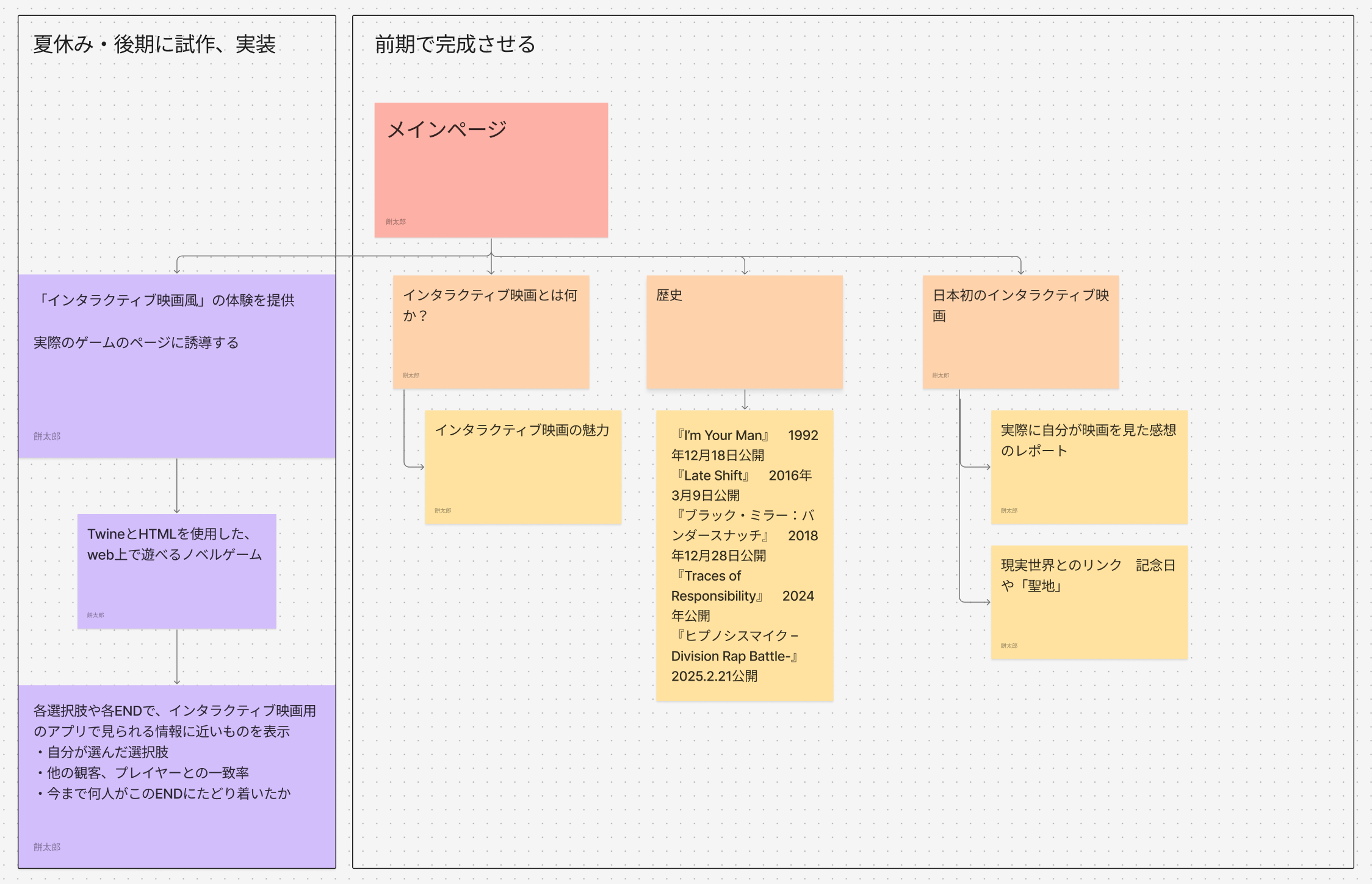 - 先行調査:既存のサイトでは、インタラクティブ映画に注目したサイトは見つけられなかった。特定のインタラクティブ映画のレビューや記事などは見つかる。