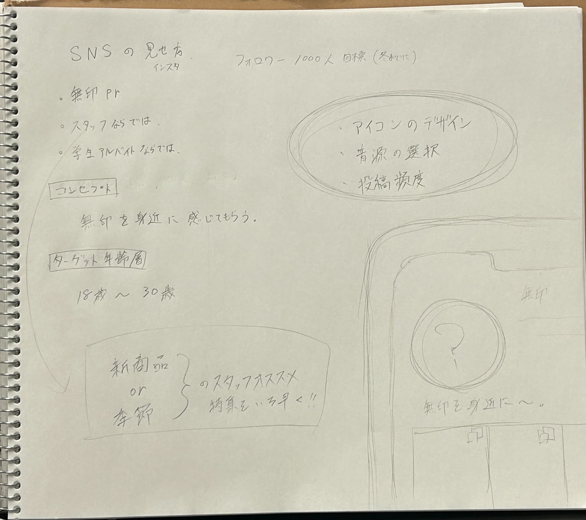 学生スタッフ目線でのSNS発信により、知られていない商品への関心を高めてもらい、無印良品を身近に感じてもらう。