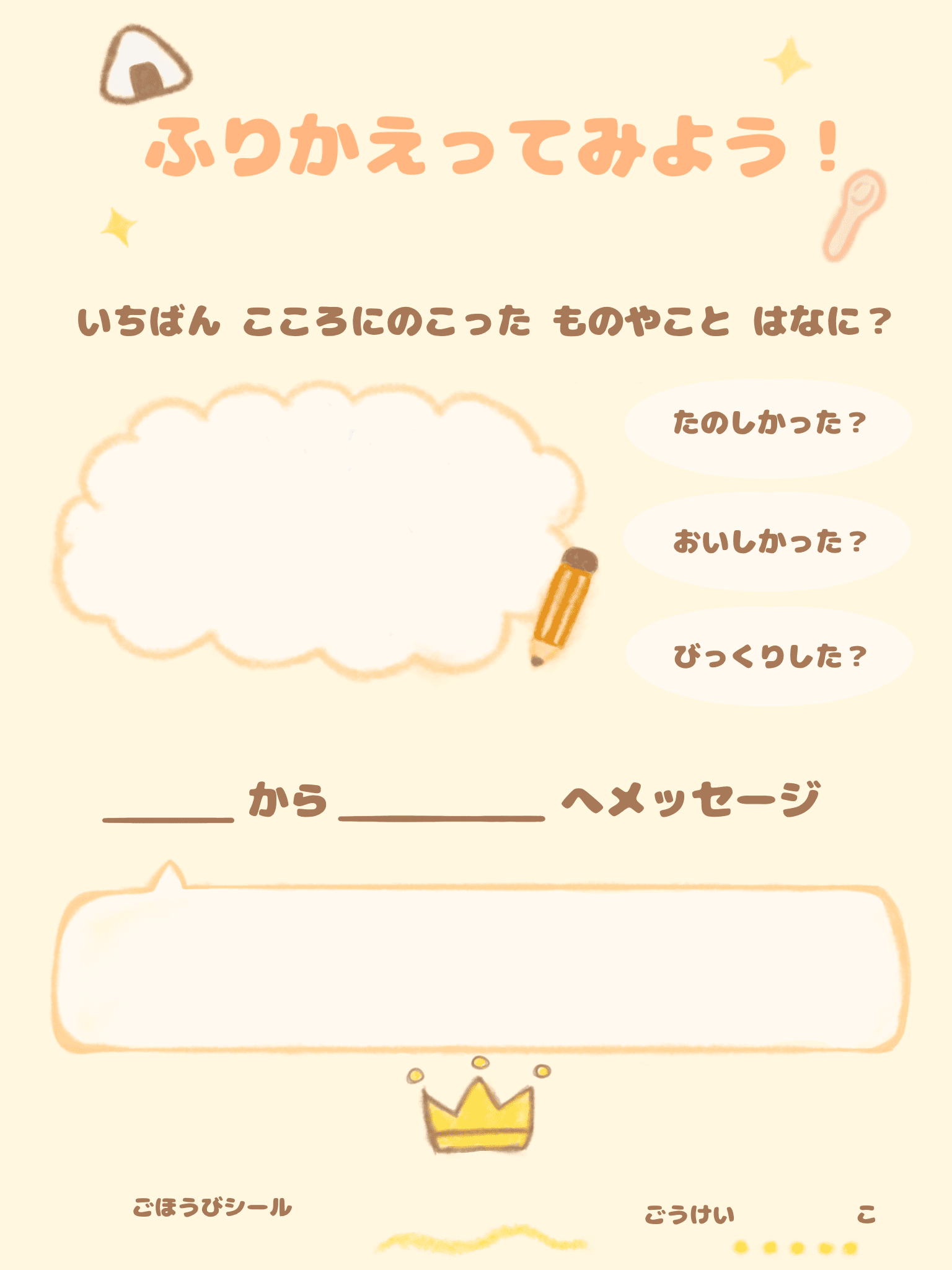 毎日ページ:食べたもの、気持ちのスタンプ、チャレンジポイント、メモ