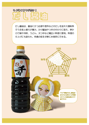 醤油のイメージキャラクターぬいぐるみ&マルマ醤油紹介リーフレット
