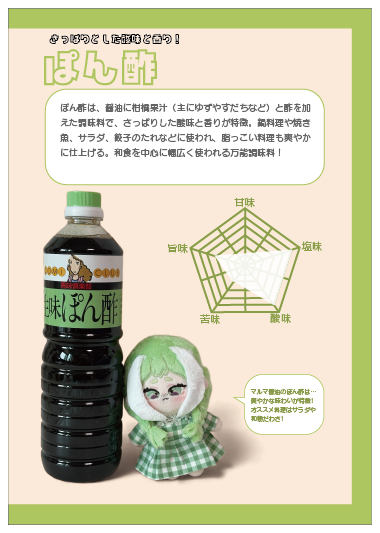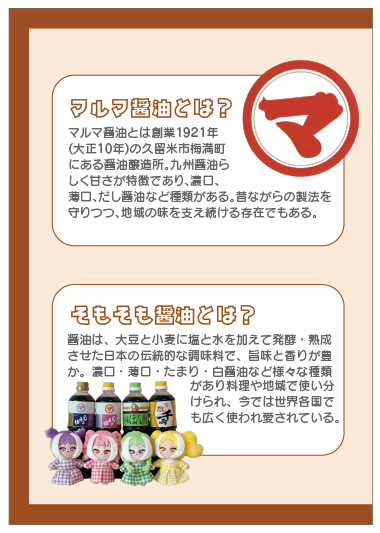 醤油のイメージキャラクターぬいぐるみ&マルマ醤油紹介リーフレット