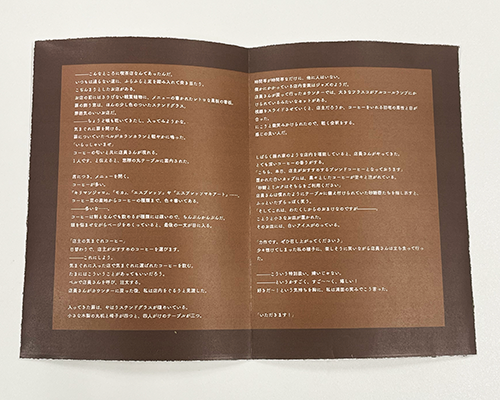 - イラストを使用した台紙とは別に、物語のみを印刷した紙を制作し同封する