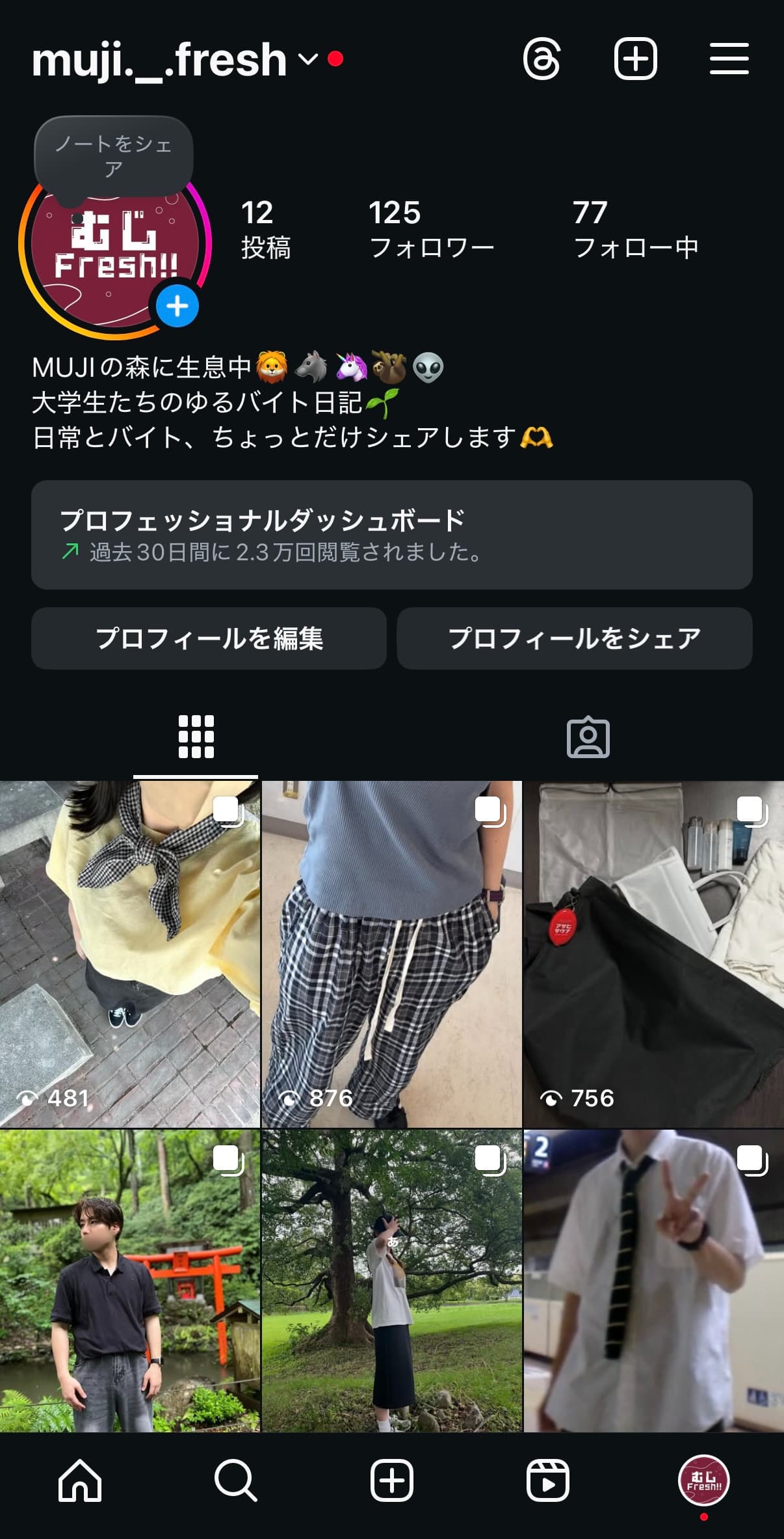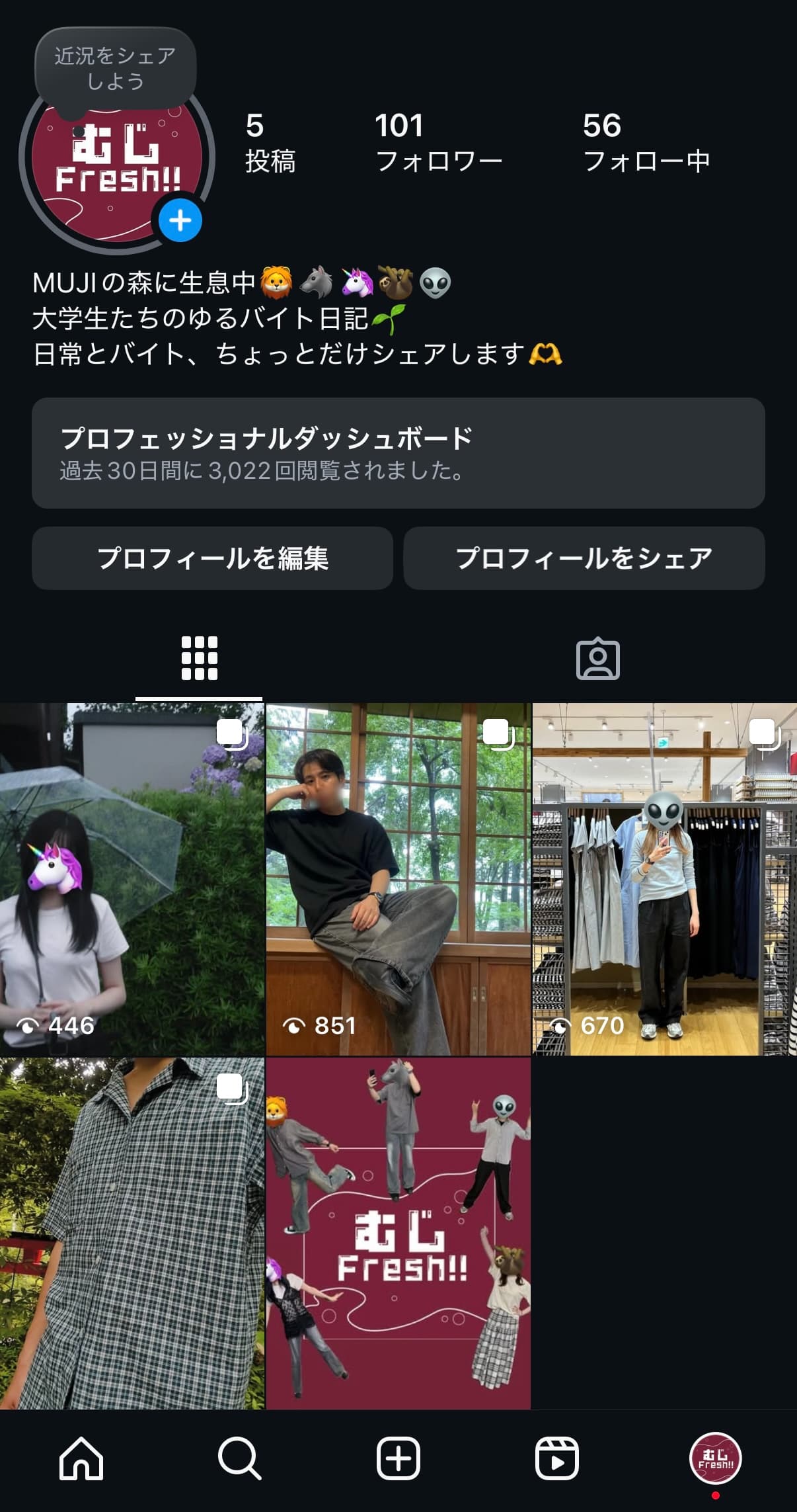 最初の投稿は、リールでなく各自写真と軽く自己紹介。