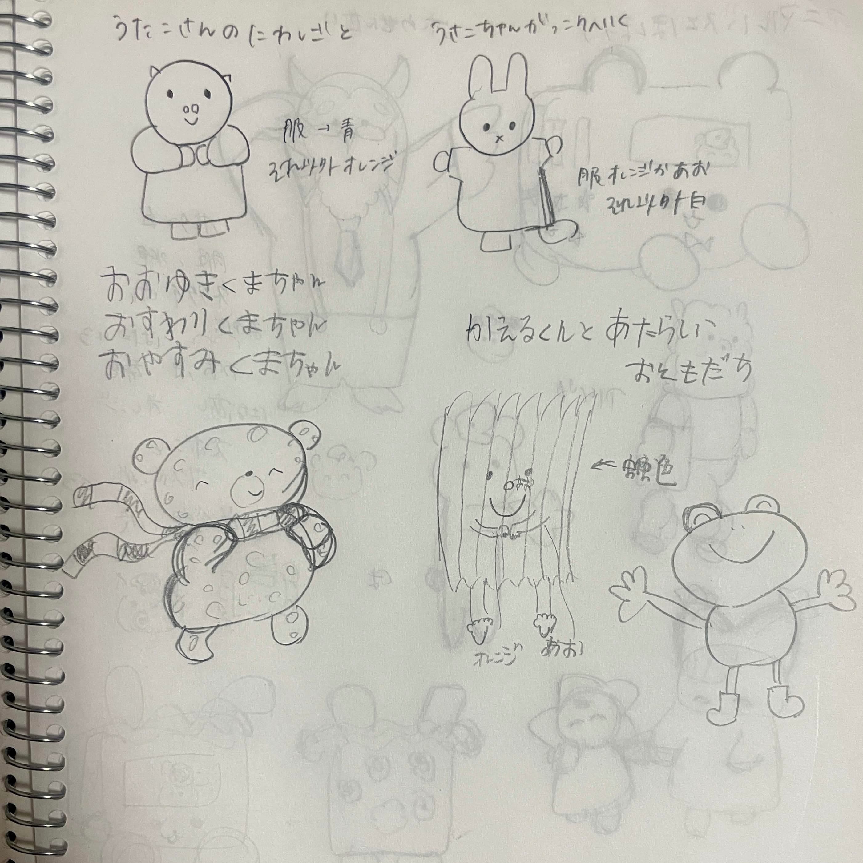 中性のキャラクターを扱う絵本に着目した際、動物を用いていることが多いと感じた。また、色彩を3色程やパステルカラーに限定することで柔らかく優しい印象を与え、親しみやすいコンテンツになると感じた。