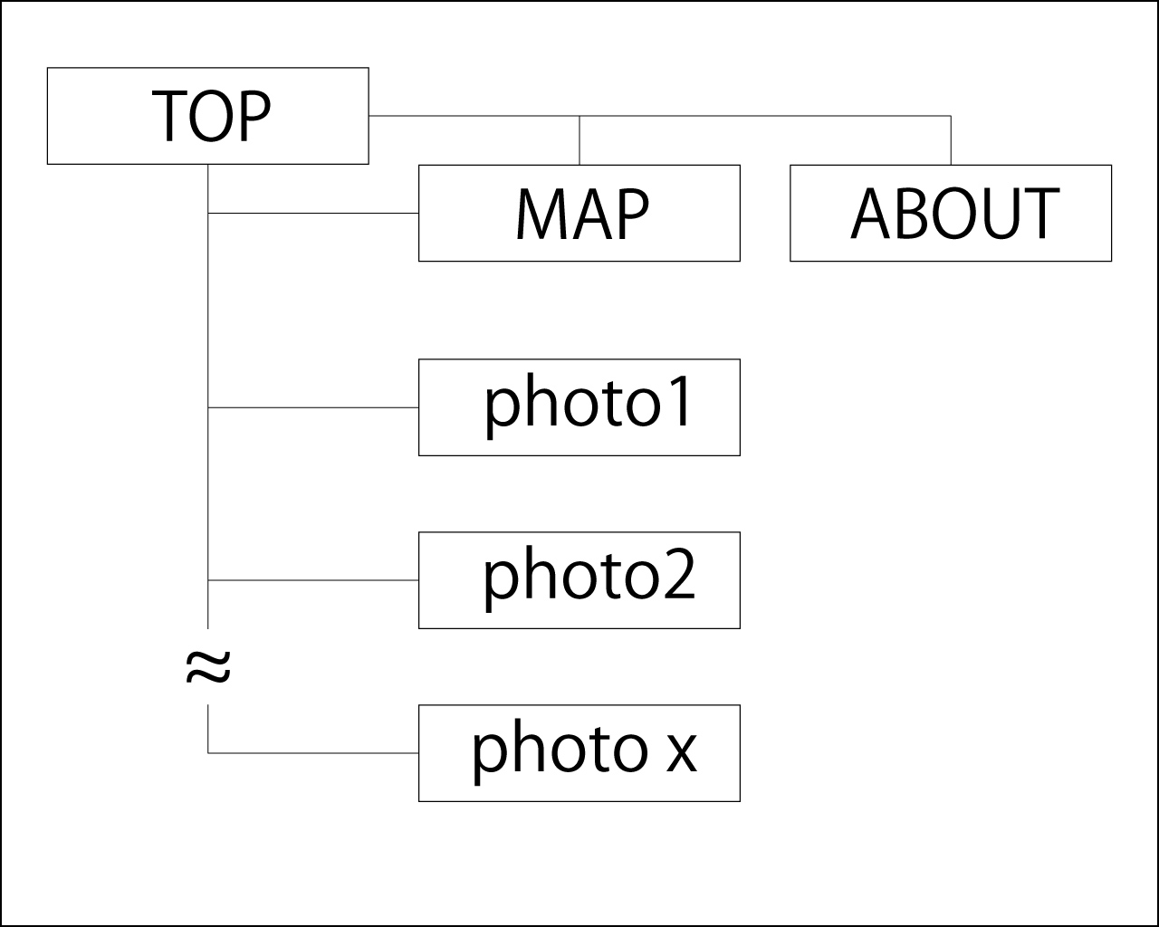 WebサイトはTOPページからMAP、ABOUT、神社の個別ページに移動できるように