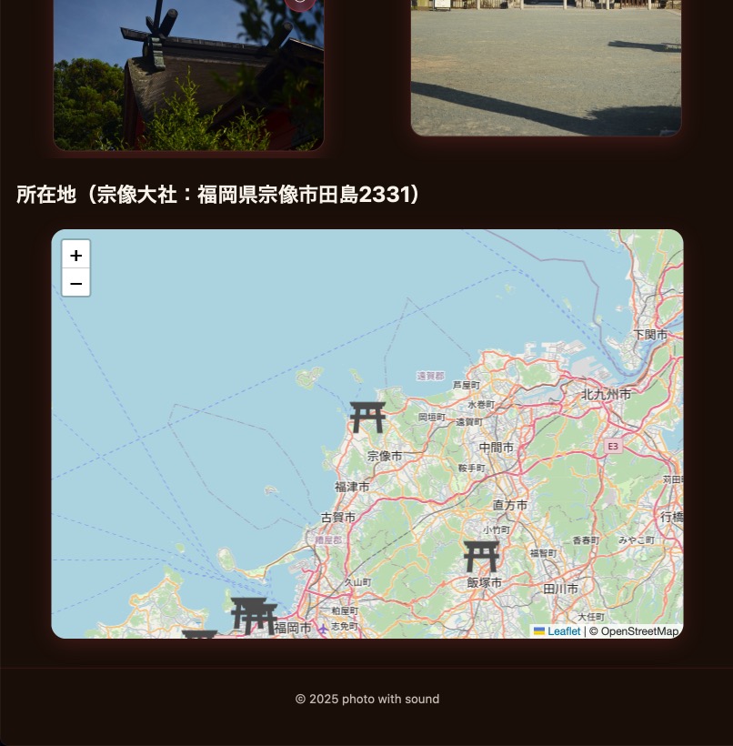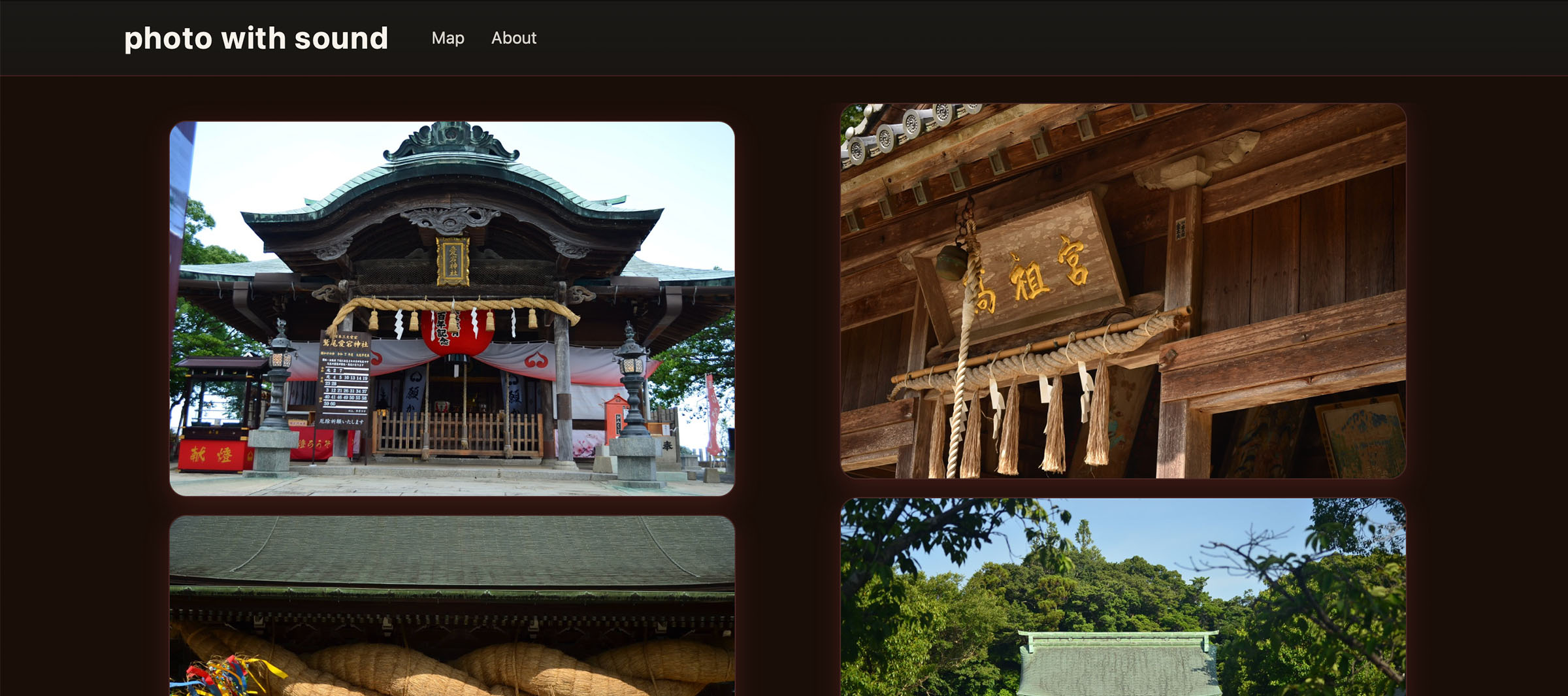 本研究では、神社の写真と現地で収録した環境音を組み合わせた「音写真」によって、視覚と聴覚の両面から神社の魅力を伝える新たな鑑賞体験の創出を目指した。若者の神社への関心は高まっている一方で、伝統や信仰よりも「自分が何を感じられるか」という体験価値が重視されている点に着目し、神社を文化的・感覚的に味わう媒体としてWebサイトを制作した。制作においては、福岡県内の神社を対象とし、写真と音をあえて映像化せず並置することで、見る側の想像力を引き出す設計とした。TOP・MAP・各神社ページを通して興味の段階的な深まりを促す構成とし、写真に触れると音が再生される仕組みにより、その場にいるような没入感を生み出せたと考える。