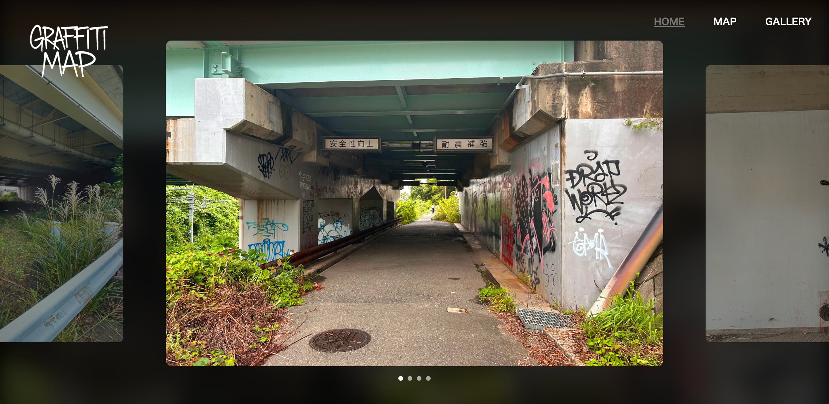 そこで今回は、少しでもグラフィティに興味を持った人が実際にその場に足を運び、自身の目で見て価値を見出してもらいたいと思い、街中に点在するグラフィティの場所を可視化し、気軽にアクセスできるようなグラフィティマップを制作しています。