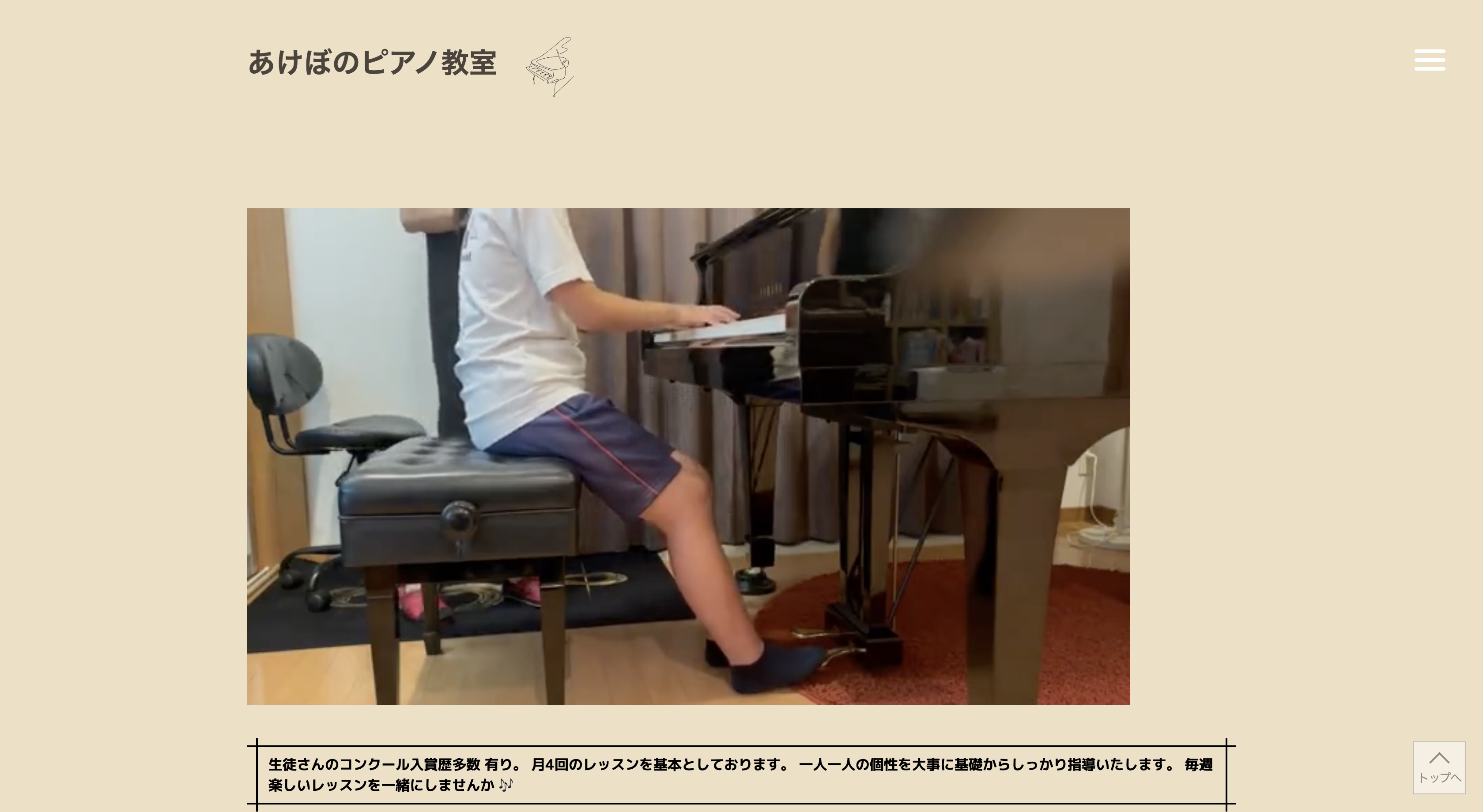- 個人のピアノ教師のwebサイトは調べた範囲では多くは存在しない,大きなサイトに何個も掲載されており少しの文章と顔写真などが多い。