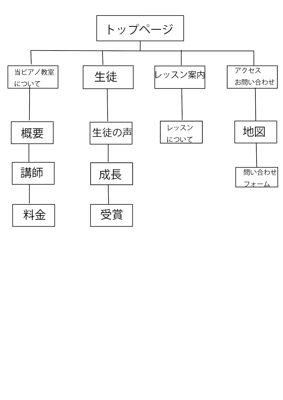 これまで一貫してきた枠の中での情報表示,楽しめるような色合いを一度考え直すために,柔らかいイメージであったり,情報,ビジュアル,ナビゲーションの3つの観点から再度見つめ直し、より万人ウケするようなサイトを作成することができました。これからの課題としては枠をなくすことによってさらにシンプルなサイトになったので,テキストであったり,写真,動画の配置を試行錯誤して,サイトに訪れた人がピアノ教室を詳しく知れるようなものを目指していく。