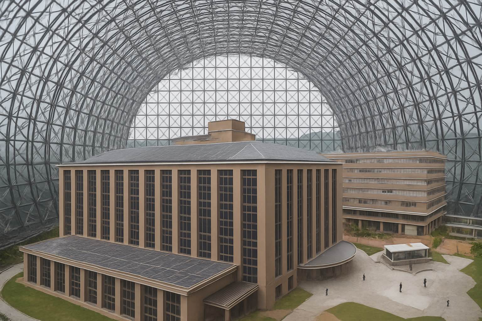 真夏と真冬は外にいるのがつらい気温でも、大学全体がドームで覆われていて冷房と暖房完備だから、どこにいても快適です。 さらに、ガラスのドームなので光が入ってくるので明るく雨の日も雪の日も屋根のおかげで濡れる心配がありません ますます素敵なcampusライフが送れます。