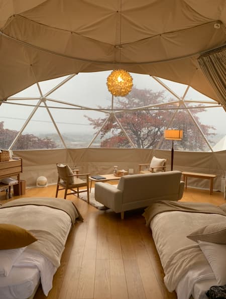 中はyogibo-やテーブルが置いてあり、プロジェクターで映画/ドラマ/アニメを鑑賞