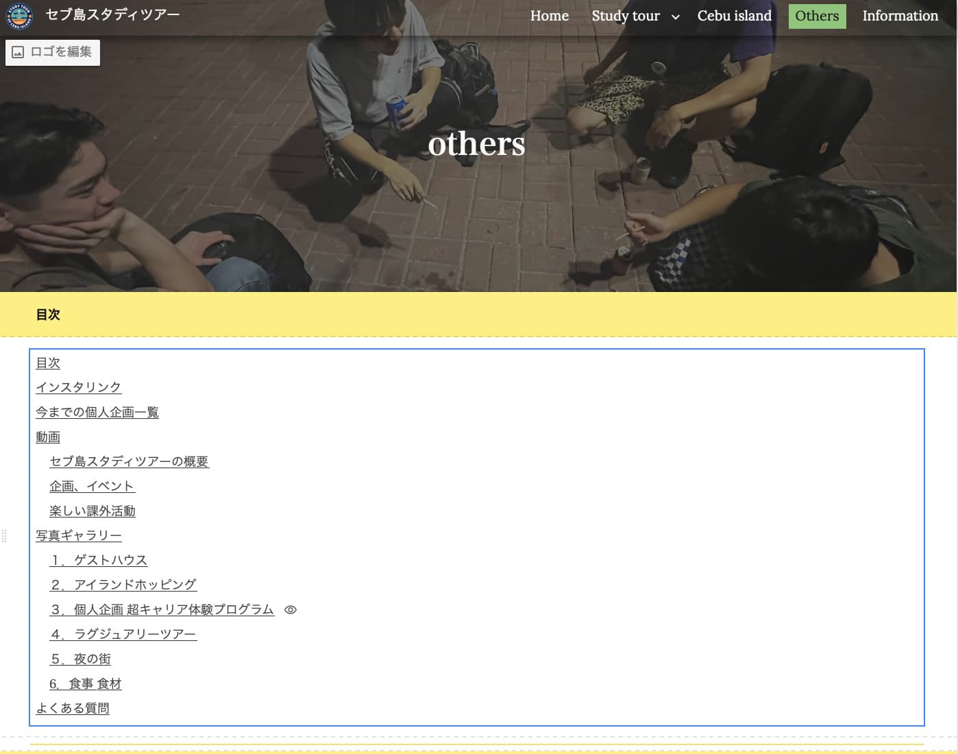 そして以前会った報告会ではインスタだけではなく、ホームページがあると親御さんにも伝えやすいという点から需要があることを再確認した。そしてサイトを作る際、スタディツアーやセブ島のことを調べだしたらまたいきたい気持ちが強くなった。その思いをこのサイトに伝えれていけばと考えています。