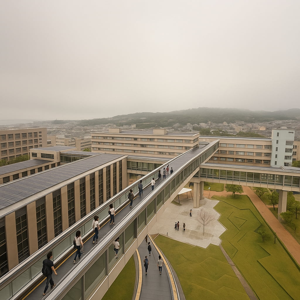 学内の地面にムービングウォークを設置に歩くことをなくす 1号館からすべての号館につながる渡り廊下を作る