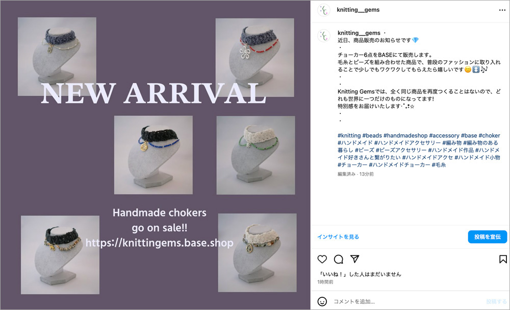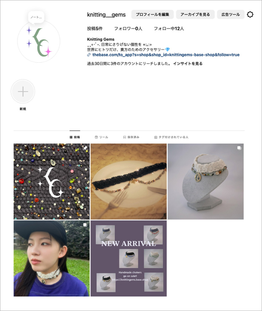 自分が作成したハンドメイド作品をInstagramでPRし、BASEを販売の手段として、より効果的なブランディング方法を研究・事例提案とする。