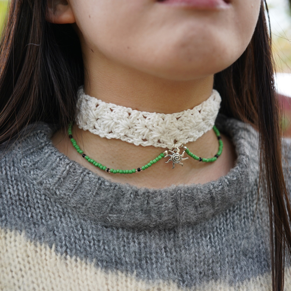 編み物、ビーズ、刺繍、レジンなど多くのジャンルがある中、自分が作ったことのある編み物とビーズを組み合わせたハンドメイド作品を作る。ネットなどで販売されているハンドメイド作品は、それぞれのジャンル(素材)ごとで作られているものがほとんどで、要素を掛け合わせたものはあまり目にしない。そこで、シンプルなデザインのニットに、ビーズで彩りをプラスする。毛糸とビーズという対極の質感を組み合わせることで他とは被らない作品に仕上げる。アクセサリーから小物まで幅広いラインナップを作成し、普段のファッションにも取り入れやすいものにする。