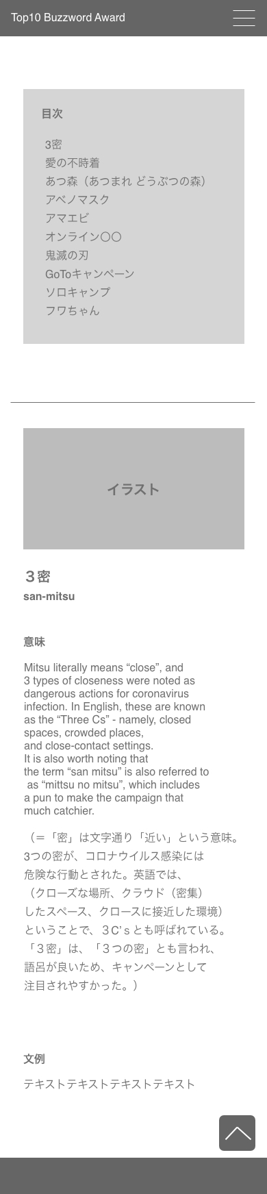 若者の間で流行した言葉を集め、その言葉の意味を英語で表現し掲載したサイト