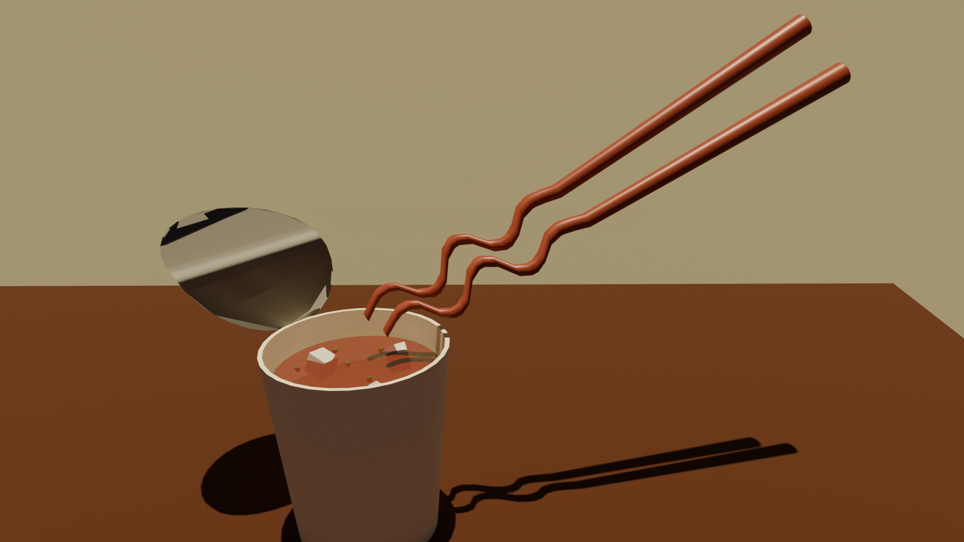 箸先がカップラーメンの麺のように見えたので、麻婆ラーメンを添えました。