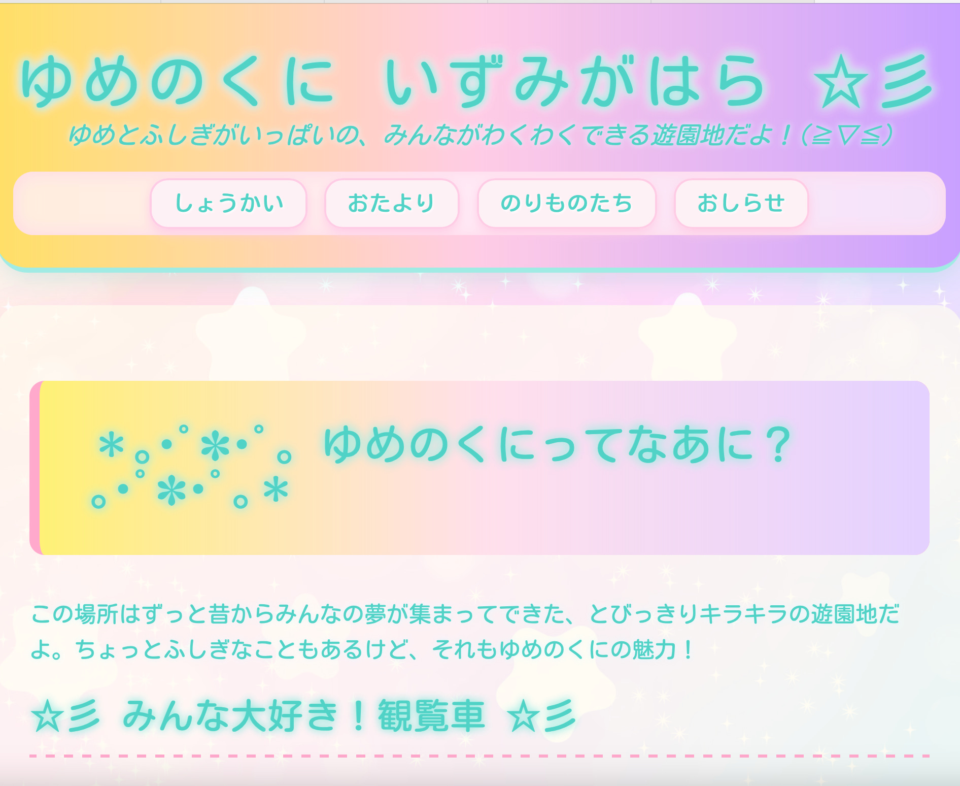 前回陰謀論についてまとめたので似たジャンルのものを違う系統の電波系サイトとしてまとめてみる試みです。今回は楽しげな電波系を目指すので架空の遊園地の公式HPを模しています。