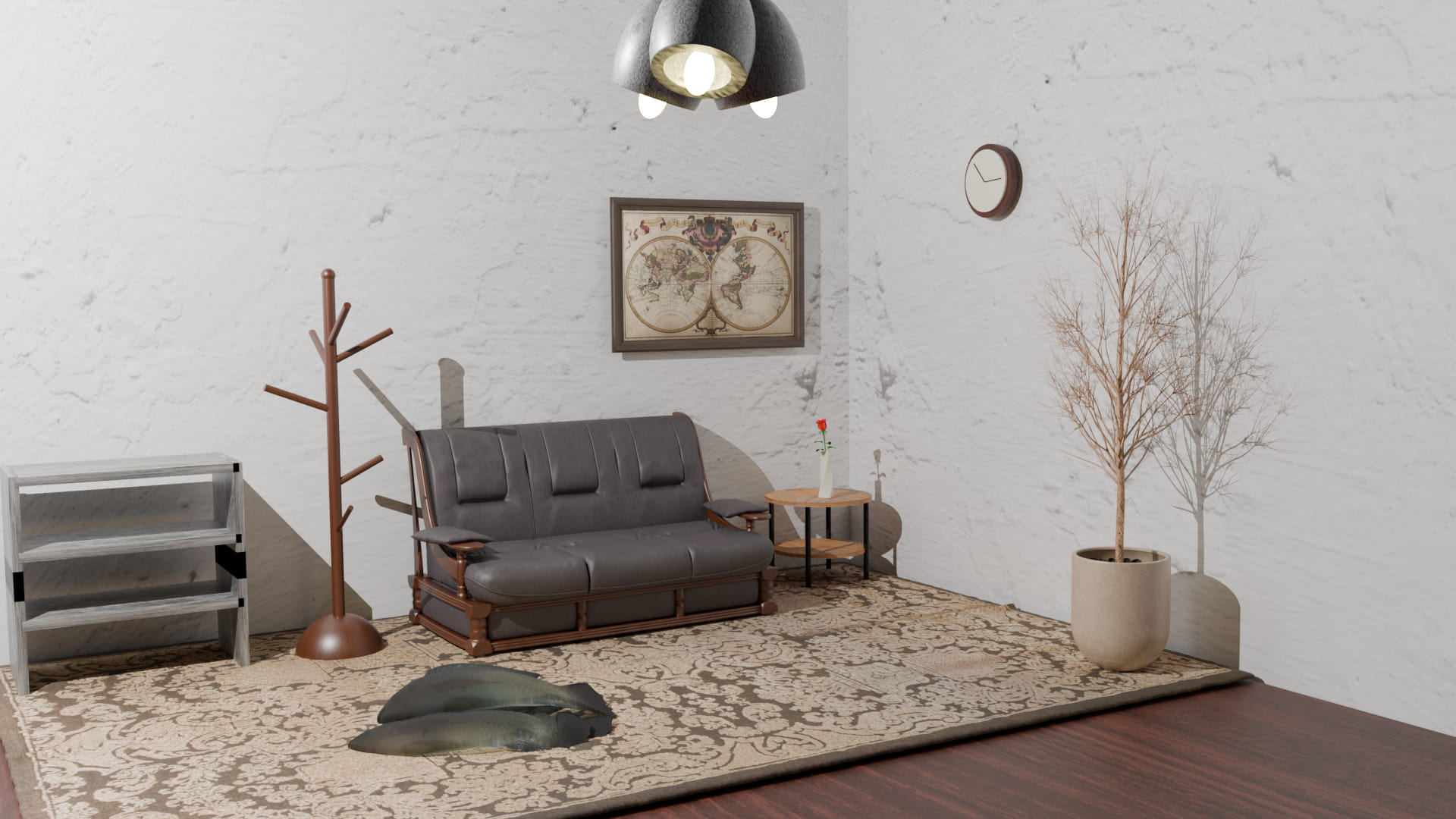 床に魚置きました。
