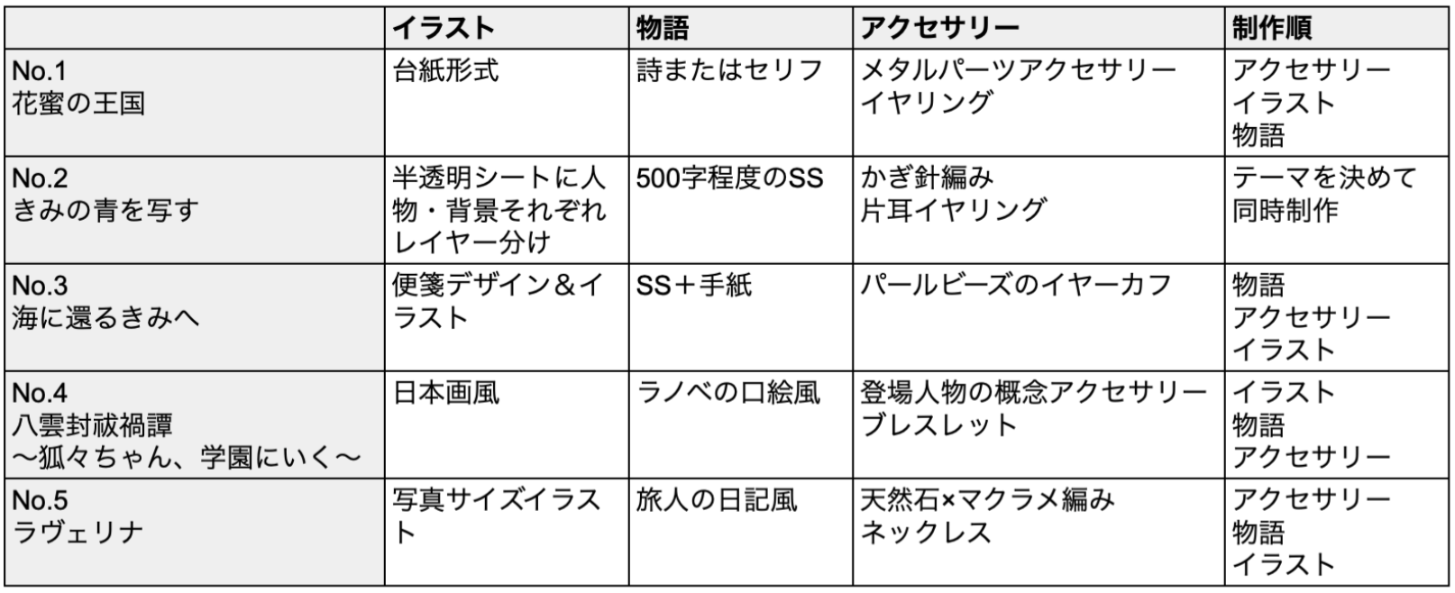 タイトルの『Linelette』は、イラスト・物語・アクセサリーの3つを繋げるために名付けた。