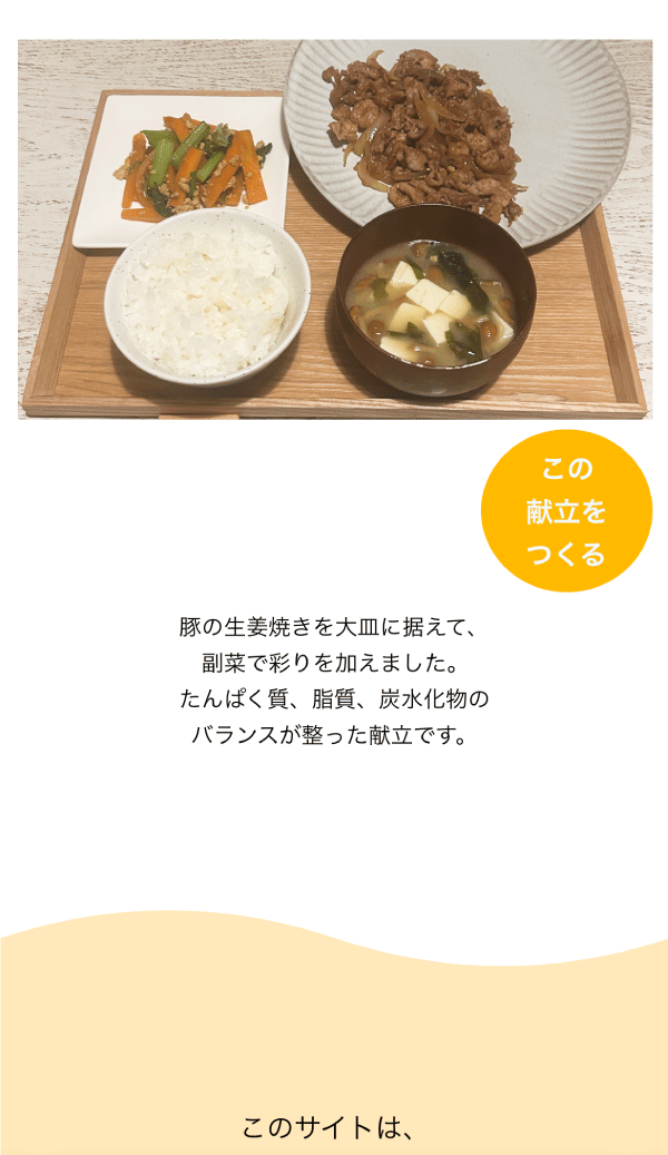 ※ハンバーガーメニューの献立にもどるを2度選択すると手順のページに飛べます。