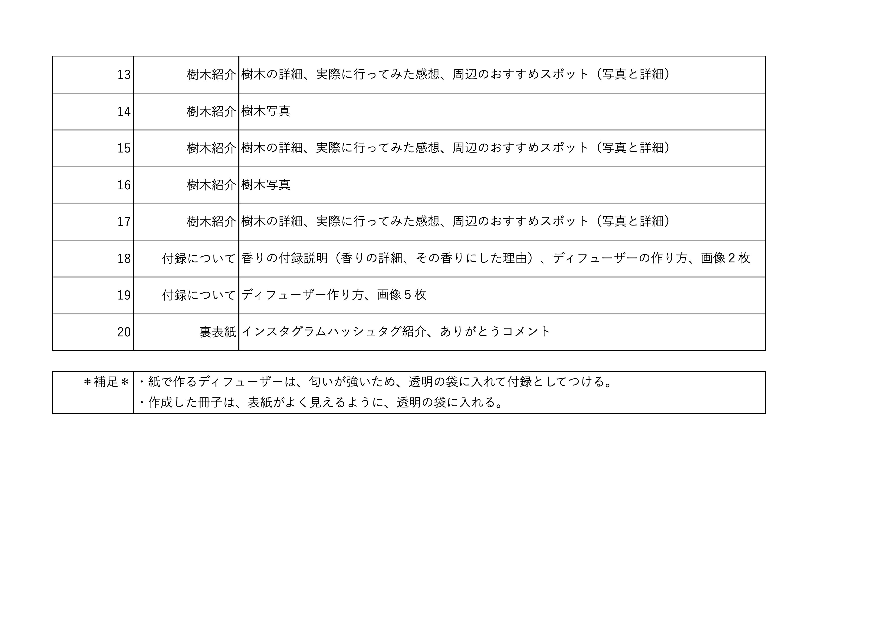 本研究では、樹木に魅力を感じつつもその場に足を運ぼうと思わない人に、フリーペーパーを見ることで樹木の魅力を感じてもらい、身近にある樹木のある場所に実際に足を運んでみようと思ってもらうことを目指す。
